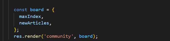 이 board라는 것이 바로 json객체가 된다는 것이고 그 안에서 maxIndex와 newArticles를 쓸 때에는 그 자체를 가져다가 쓸 수 있다는 것.